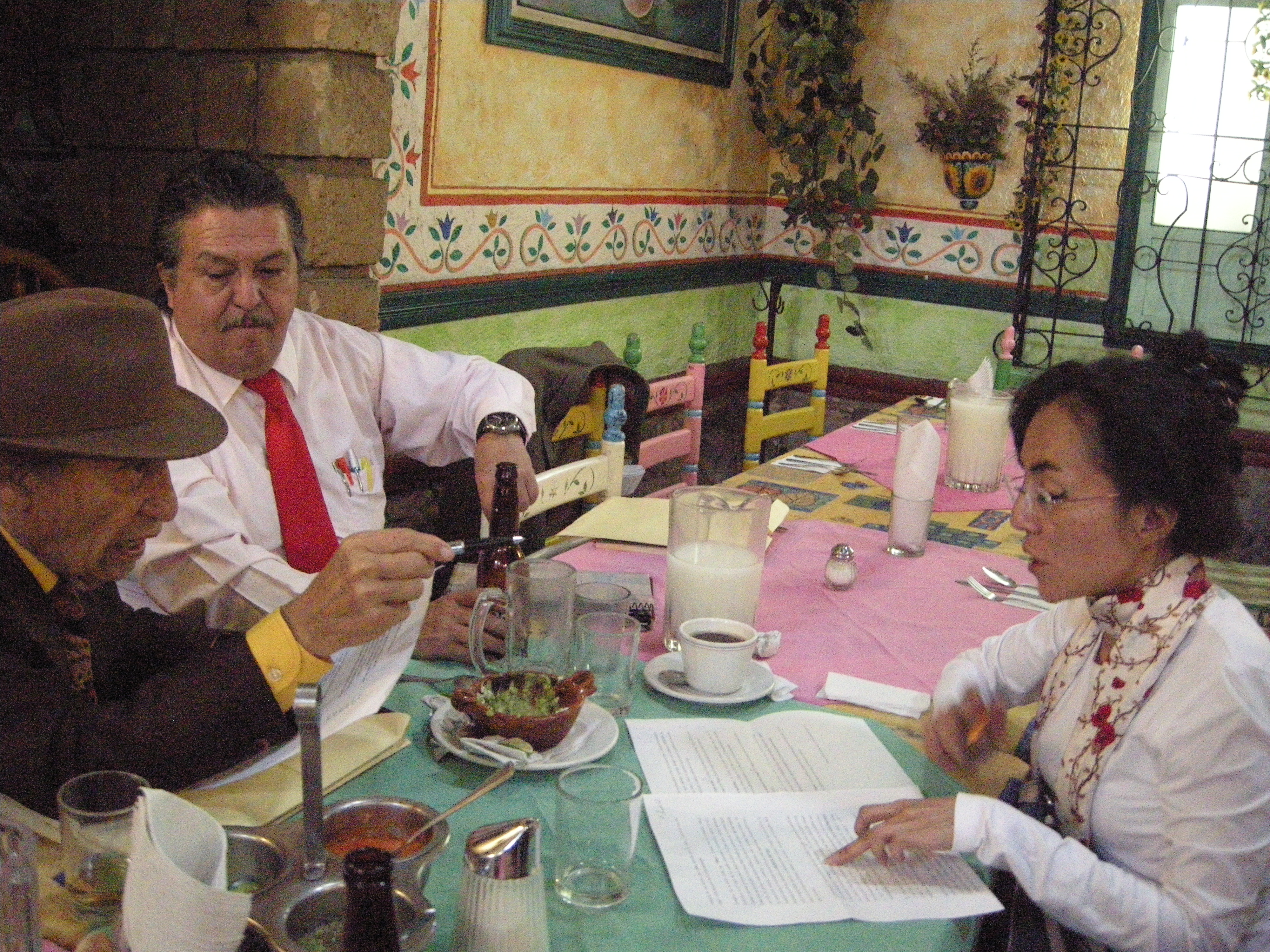 Mtro. Gonzalo Martré, Mtro. Arturo Trejo Villafuerte y Dra. Leticia Romero Chumacero, durante la deliberación del Premio «Gonzalo Martré de Cuento Erótico», en Chapingo.