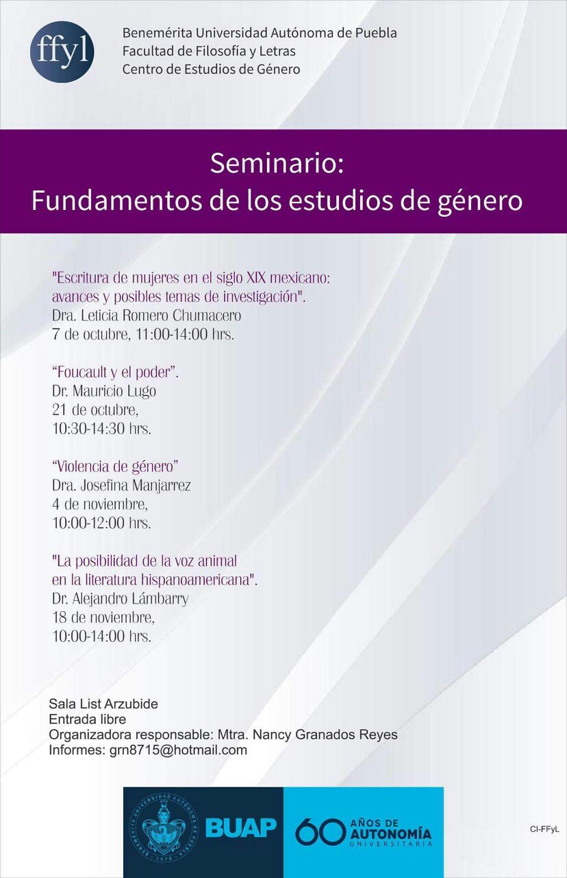 7 de octubre: conferencia en el Seminario «Fundamentos de los estudios de género», Benemérita Universidad Autónoma de Puebla