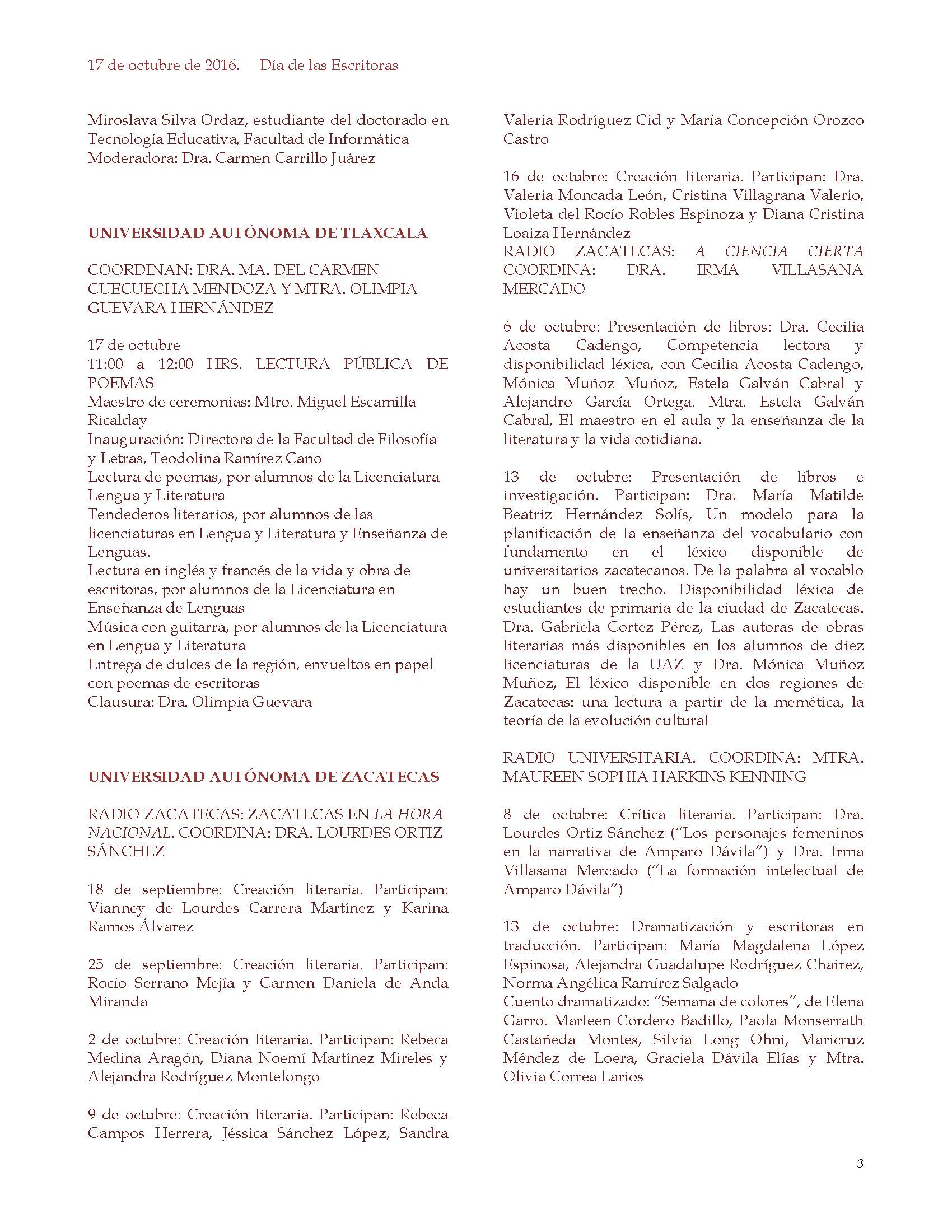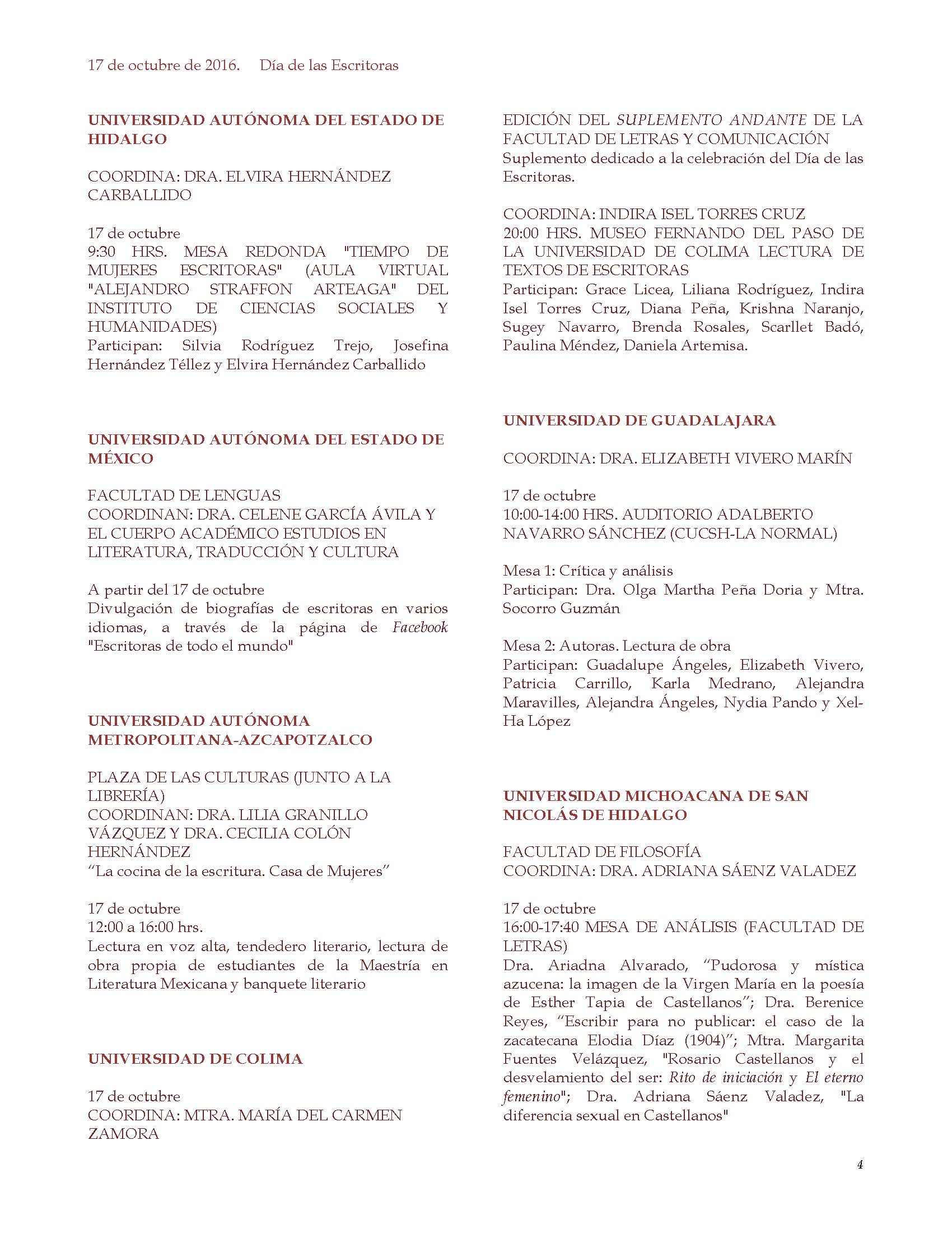 2016-octubre, Colima, Día de las Escritoras, escritoras, Escritura de mujeres, Michoacán, Toluca, UACM, UAM-Azcapotzalco, Universidad Autónoma de Querétaro, Universidad Autónoma de Tlaxcala, Universidad Autónoma de Zacatecas, Universidad Autónoma del Estado de Hidalgo, Universidad Autónoma Metropolitana-Azcapotzalco, Universidad de Guadalajara, Universidad Michoacana de San Nicolás de Hidalgo, Universidad Veracruzana, Voces en Tinta