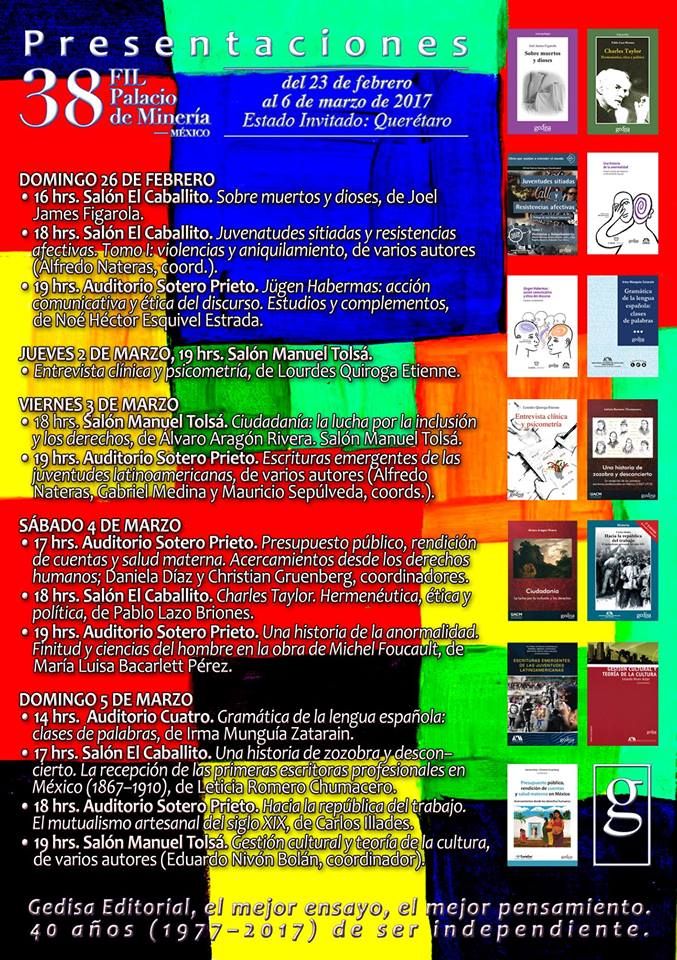 «Una historia de zozobra y desconcierto» en el calendario de presentaciones de libros de Gedisa en la FIL-Minería
