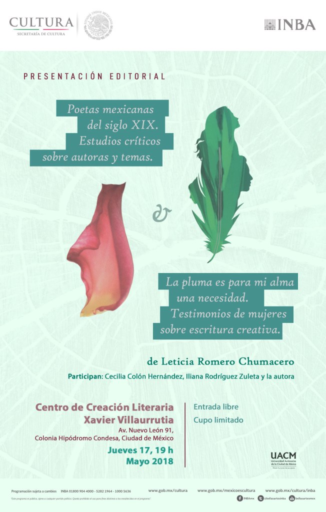 17 de mayo: presentación de «Poetas mexicanas» y «La pluma es para mi alma una necesidad» en el Centro de Creación Literaria Xavier Villaurrutia