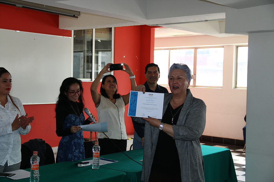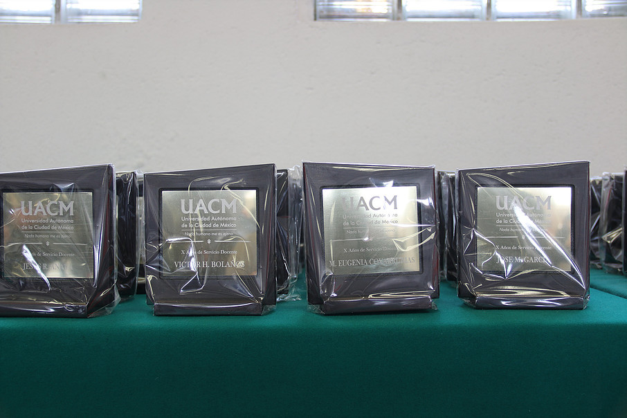El lunes 17 de diciembre, en la sede de la Rectoría de la Universidad Autónoma de la Ciudad de México (UACM), fueron entregados los reconocimientos a profesoras y profesores que durante el año previo cumplieron diez o quince años de servicio docente en la UACM. Presidieron la ceremonia la Dra. Leticia Romero Chumacero, Coordinadora Académica; la Lic. Marissa Reyes Godínez, Coordinadora de Difusión Cultural y Extensión Universitaria; la Lic. Nora Liliana Flores Salinas, Coordinadora de Certificación y Registro; el Mtro. Eduardo Delgado Fabián, Coordinador de Planeación; y el Mtro. Raúl Ernesto de Guadalupe Bravo Núñez, Coordinador del Colegio de Ciencias y Humanidades.