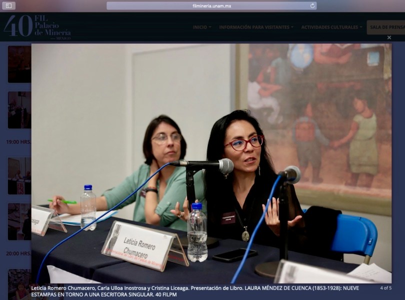 Presentación del libro «Laura Méndez de Cuenca (1853-1928). Nueve estampas en torno a una escritora singular» (Gedisa/UACM, 2018). Mtra. Cristina Liceaga, Dra. Leticia Romero Chumacero y Dra. Carla Ulloa Inostroza. [Foto: FIL-Minería.]
