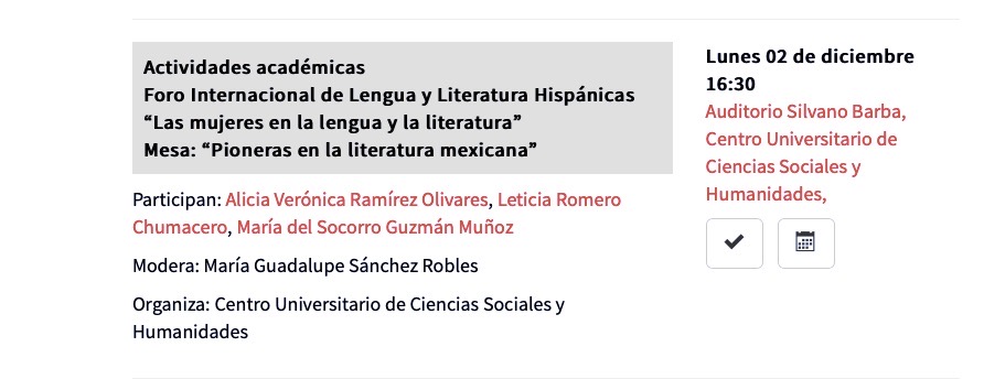 Se ha dado a conocer el programa de la Feria Internacional del Libro de Guadalajara, donde la Dra. Leticia Romero Chumacero participará en el Foro Internacional de Lengua y Literatura Hispánicas en la mesa «Pioneras en la literatura mexicana»: