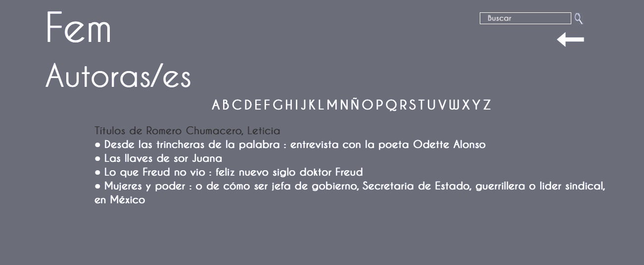 Es posible consultar las colaboraciones publicadas en la histórica revista feminista mexicana Fem (1976-2005) a través del repositorio del Centro Interdisciplinario de Estudios de Género de la Universidad Nacional Autónoma de México: https://archivos-feministas.cieg.unam.mx También en el portal https://uacm.academia.edu/LeticiaRomeroChumacero