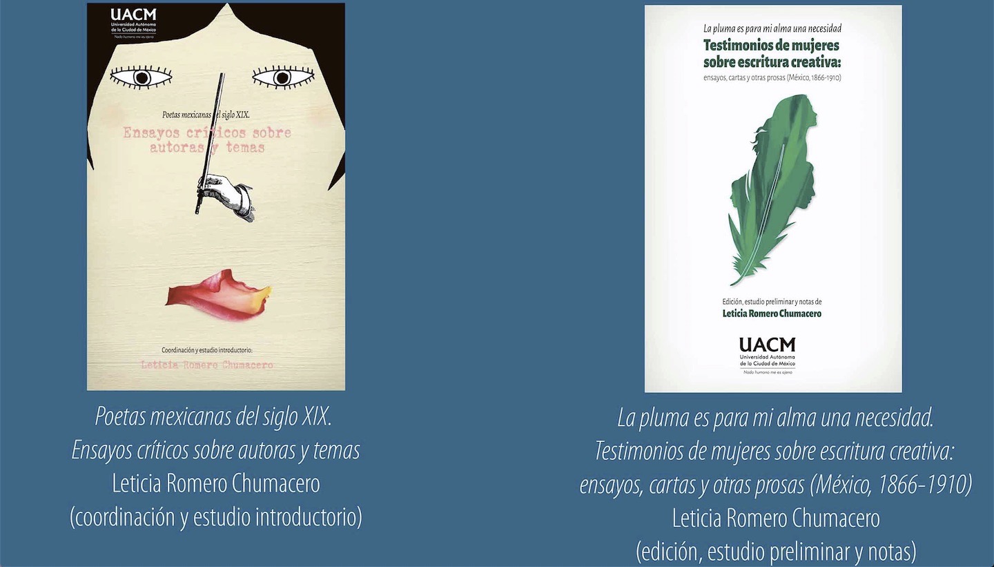 La Universidad Autónoma de la Ciudad de México ha puesto a disposición del público, a través de su portal web, dos publicaciones de la doctora Leticia Romero Chumacero: Poetas mexicanas del siglo XIX. Ensayos críticos sobre autoras y temas, y La pluma es para mi alma una necesidad. Testimonios de mujeres sobre escritura creativa: ensayos, cartas y otras prosas (México, 1866-1910).