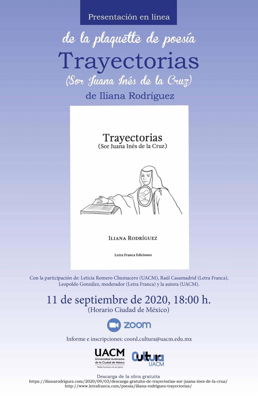 11 de septiembre de 2020: Presentación de «Trayectorias», de la poeta Iliana Rodríguez, vía Zoom