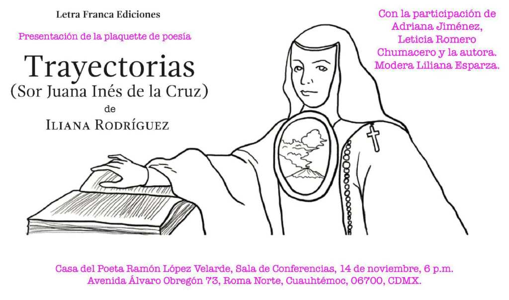14 de noviembre: Presentación del poemario «Trayectorias (Sor Juana Inés de la Cruz)», de Iliana Rodríguez, en la Casa del Poeta