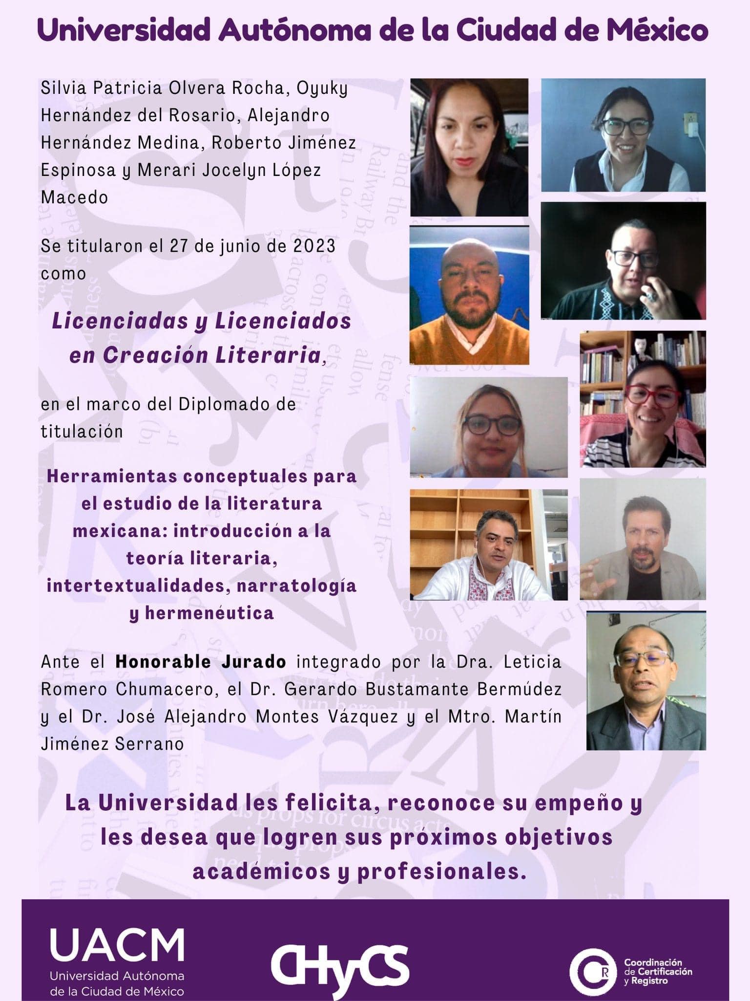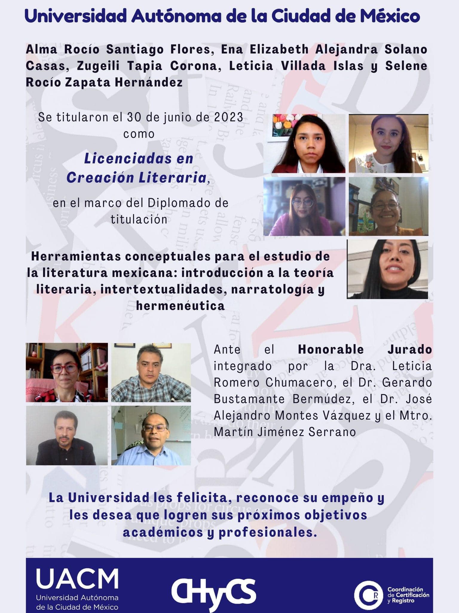 • Tesinas dirigidas en el Diplomado de Titulación de la Licenciatura en Creación Literaria de la UACM