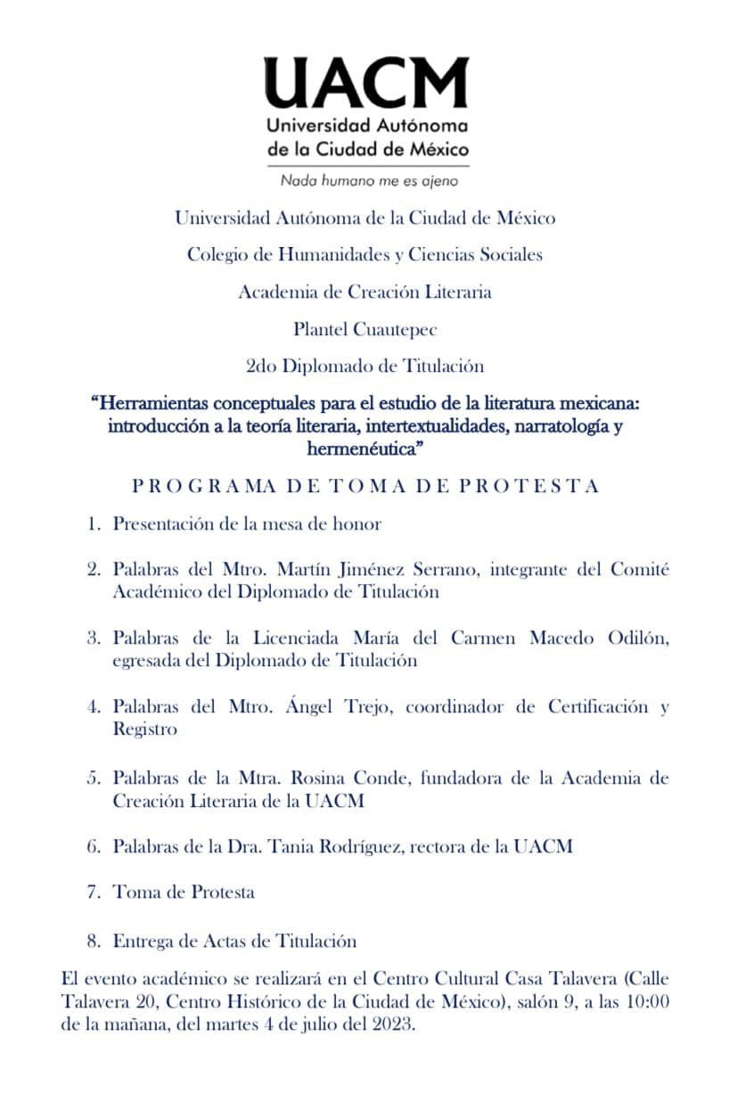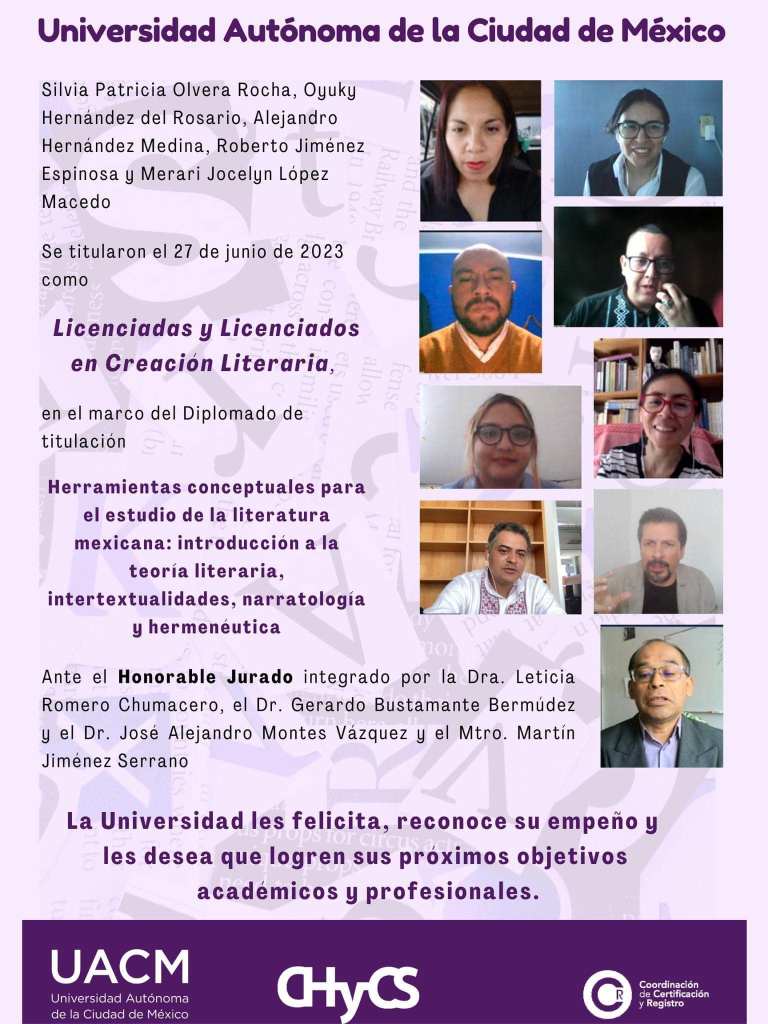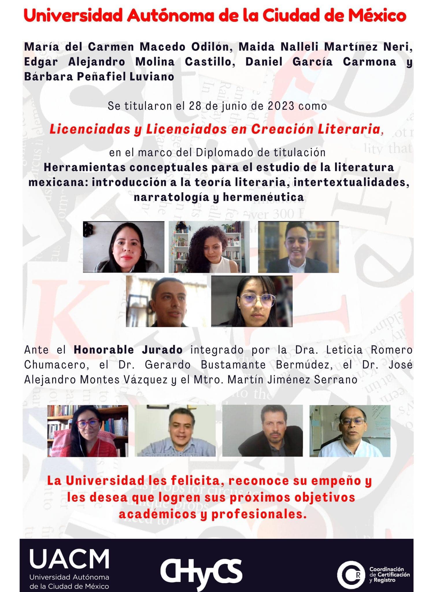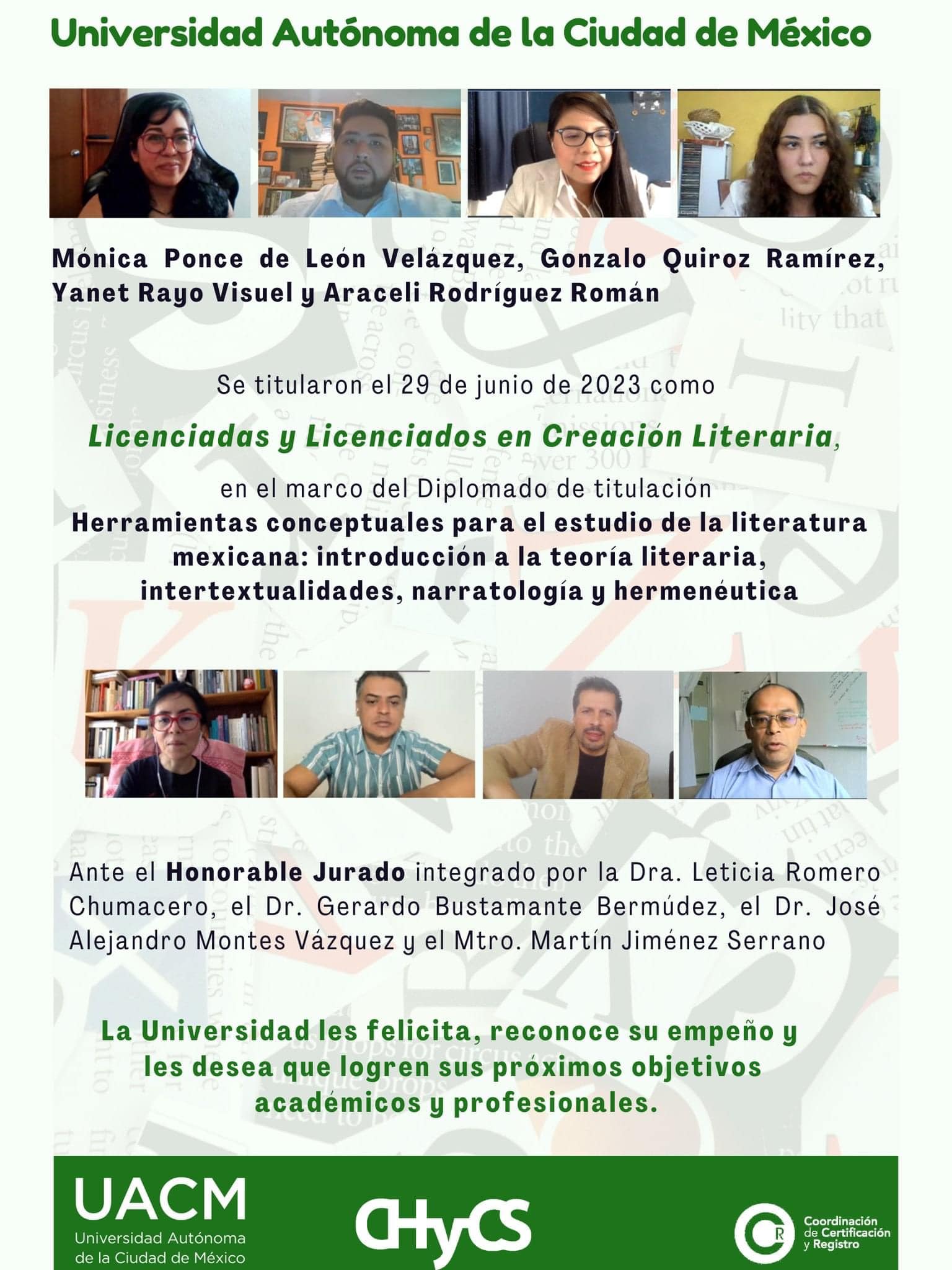 4 de julio de 2023: Toma de protesta de 23 tituladas y titulados de la Licenciatura en Creación Literaria de la UACM