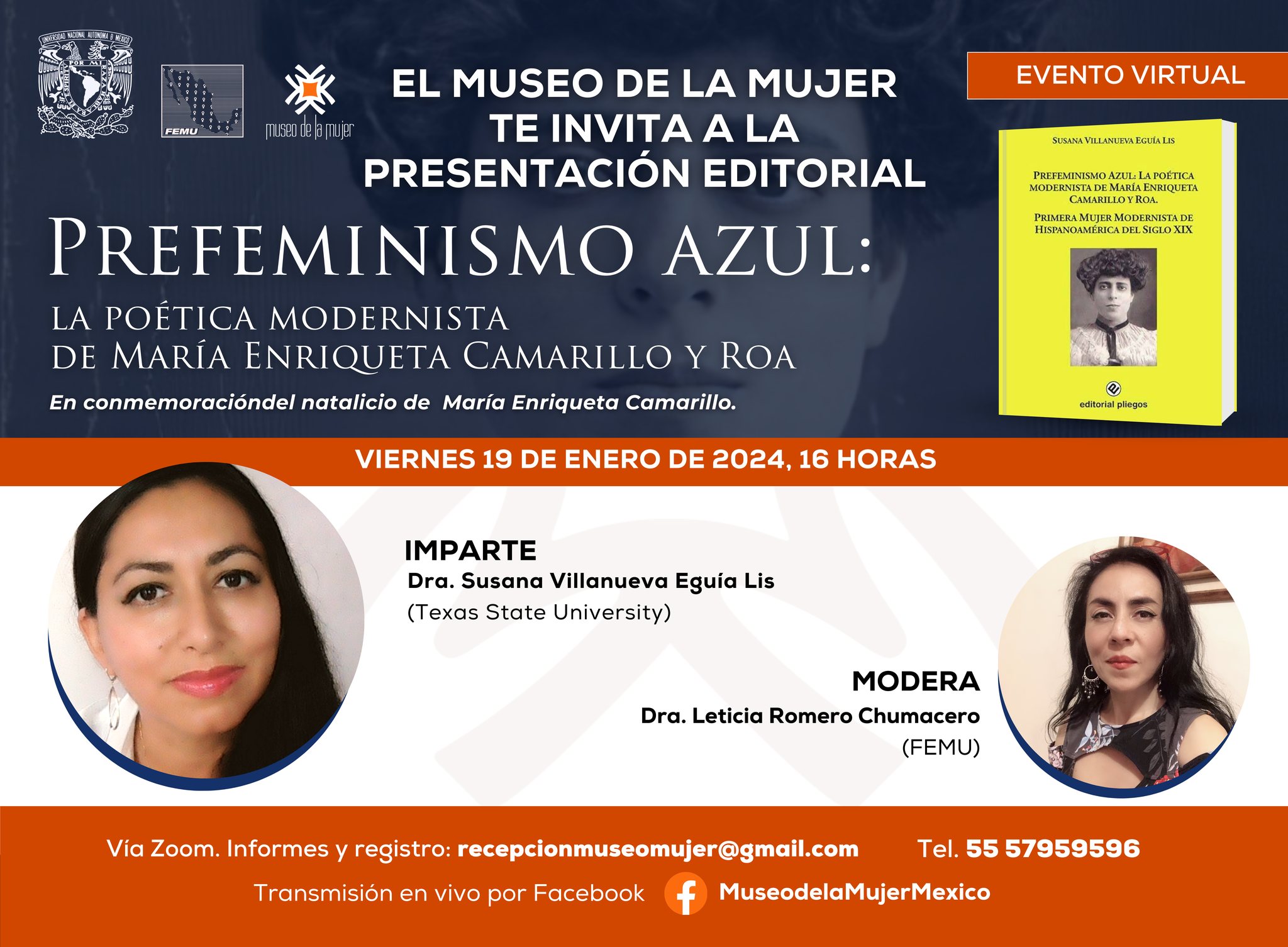 PRESENTACIÓN EDITORIAL: Prefeminismo azul: la poética modernista de María Enriqueta Camarillo y Roa, en conmemoración del natalicio de María Enriqueta Camarillo.