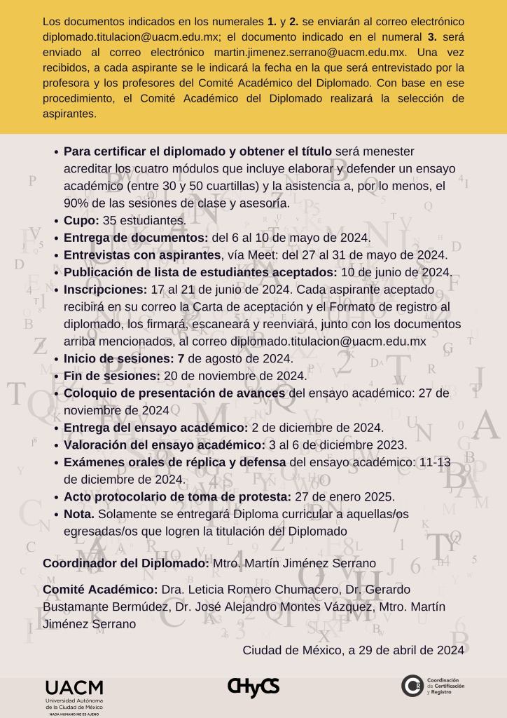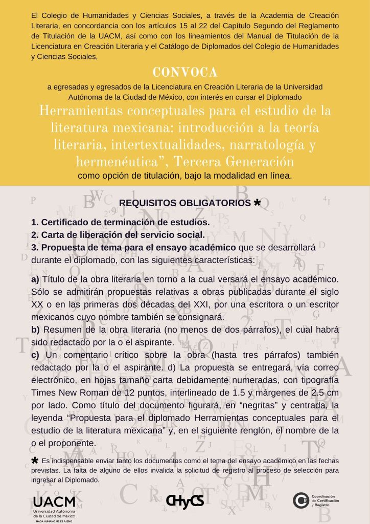 Convocatoria: Diplomado de titulación de la Licenciatura en Creación Literaria de la UACM
