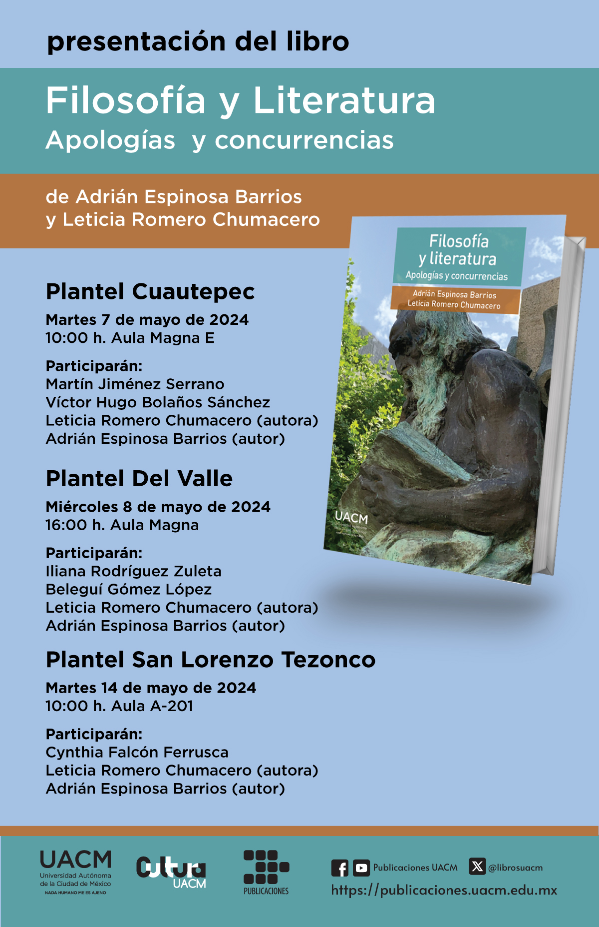 Publicado en 2024-mayo, Cuautepec, Del Valle, Filosofía y Literatura: Apologías y concurrencias, Presentación de libro, Tezonco, UACM. Marca el enlace permanente.