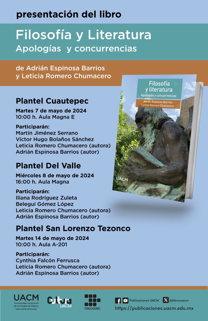 LRC 4 mayo, 2024 Imagen 2024-mayo, Cuautepec, Del Valle, Filosofía y Literatura: Apologías y concurrencias, Presentación de libro, Tezonco, UACM