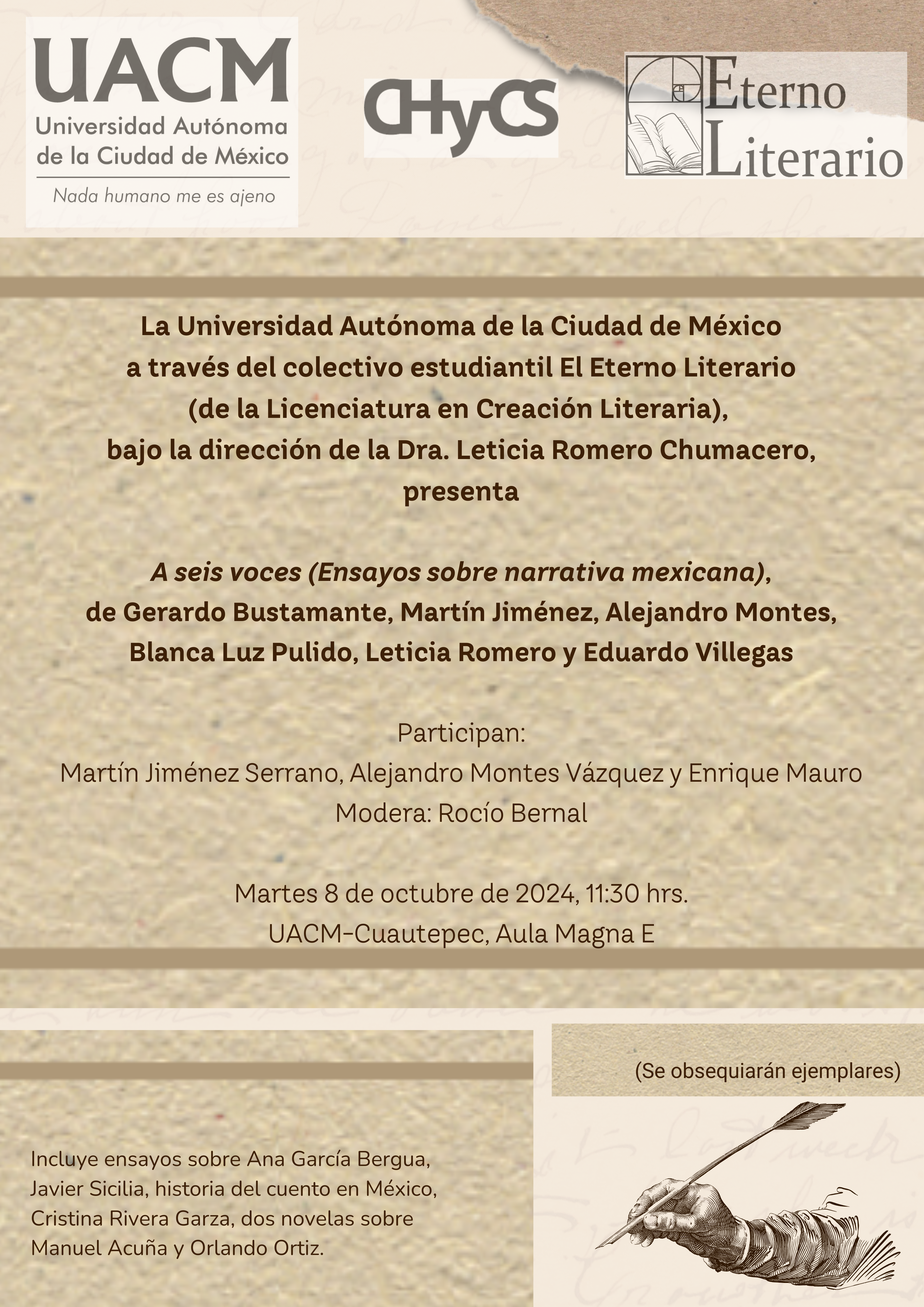 Presentación del libro «A seis voces», en la Universidad Autónoma de la Ciudad de México: 8 de octubre de 2024