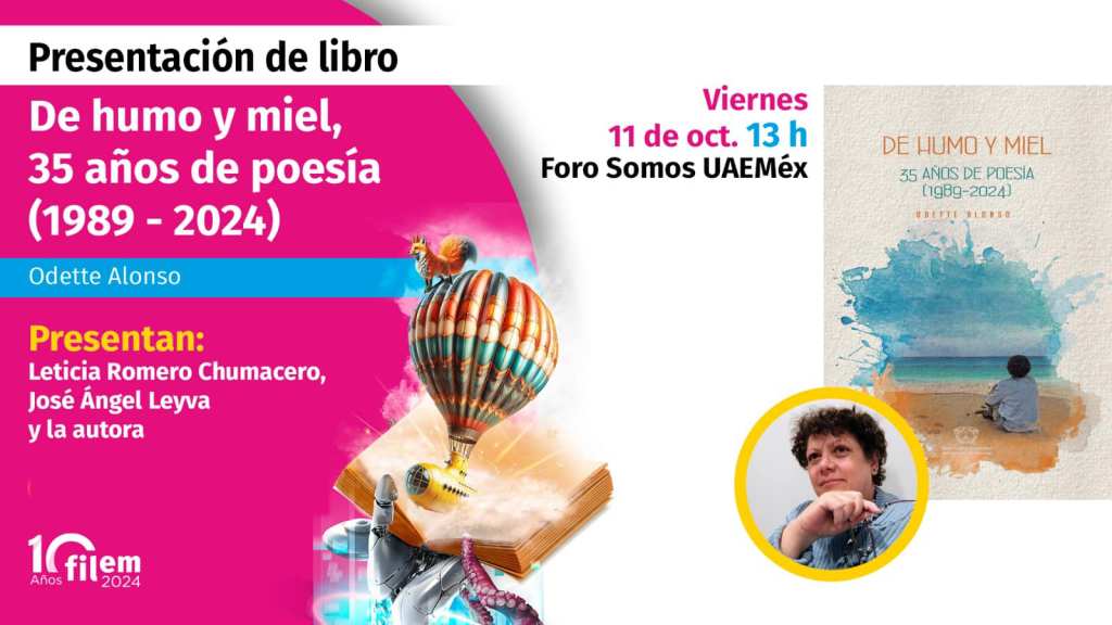 11 de octubre: Presentación del libro «De humo y miel», de la poeta Odette Alonso, en la Feria Internacional del Libro del Estado de México