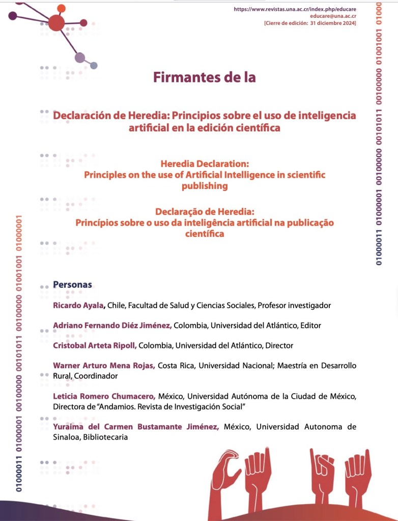 Declaración de Heredia (versión íntegra) en la Revista Electrónica Educare, vol. 28, S (2024): https://www.revistas.una.ac.cr/index.php/EDUCARE/article/view/19967