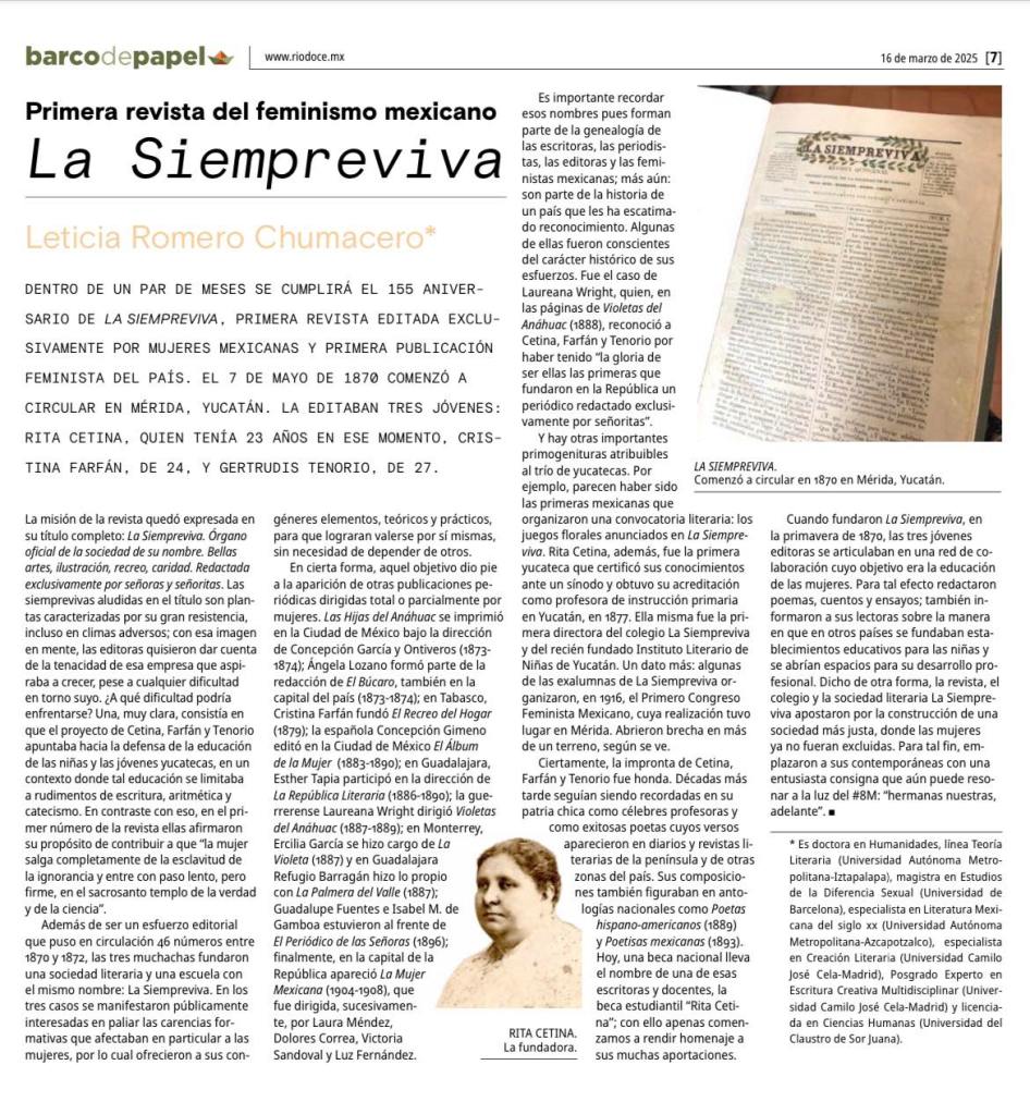 Liga hacia la versión web: https://riodoce.mx/2025/03/21/la-siempreviva-primera-revista-del-feminismo-mexicano/