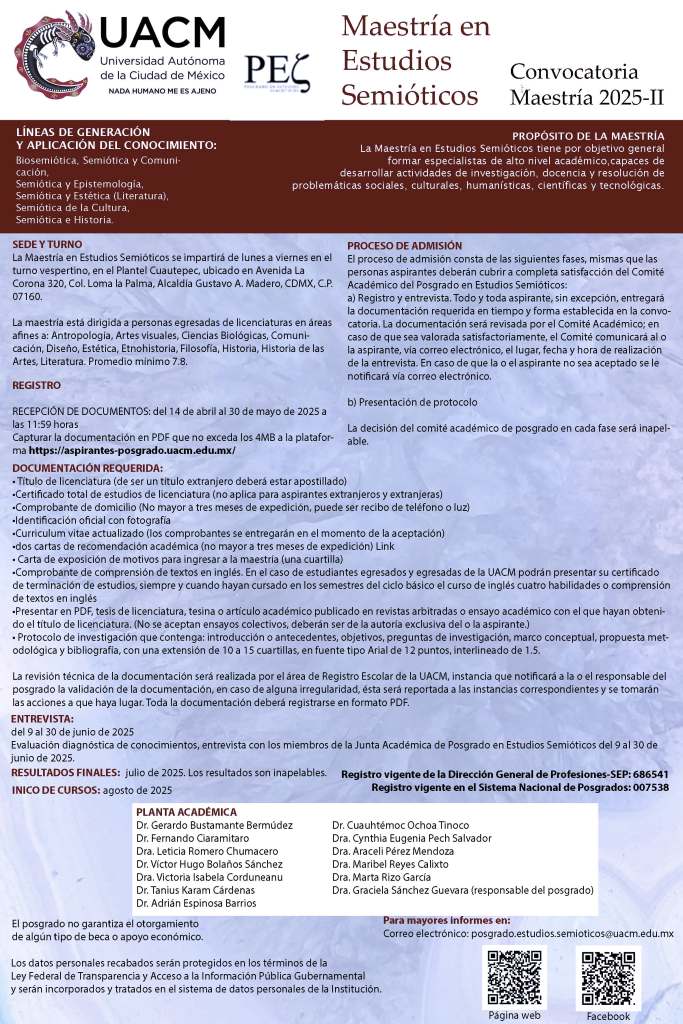 Más información: https://www.uacm.edu.mx/oferta_academica/chycs/posgrados/estudiossemioticos