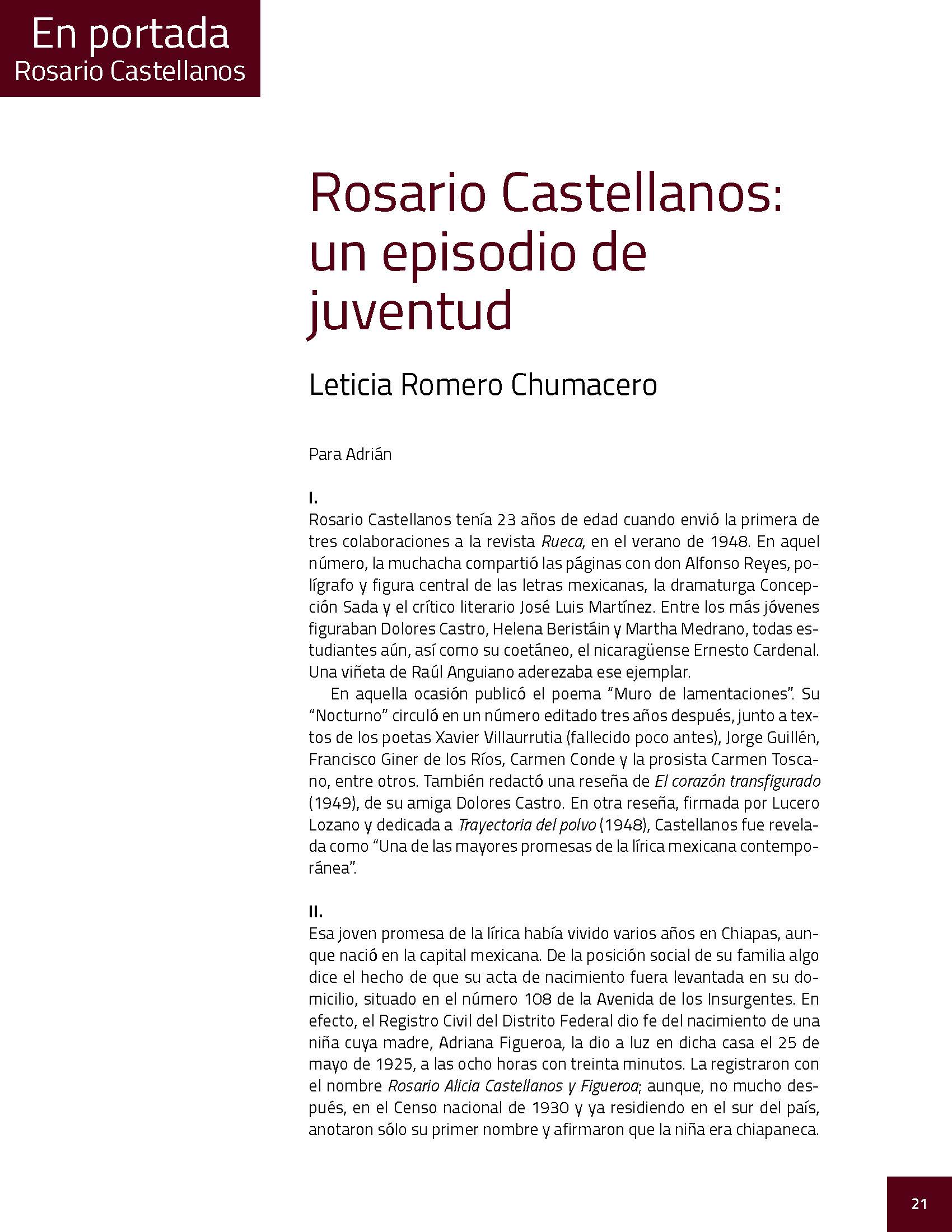 Mayo de 2025. Artículo «Rosario Castellanos: un episodio de juventud», en la revista universitaria Tianguis de Letras