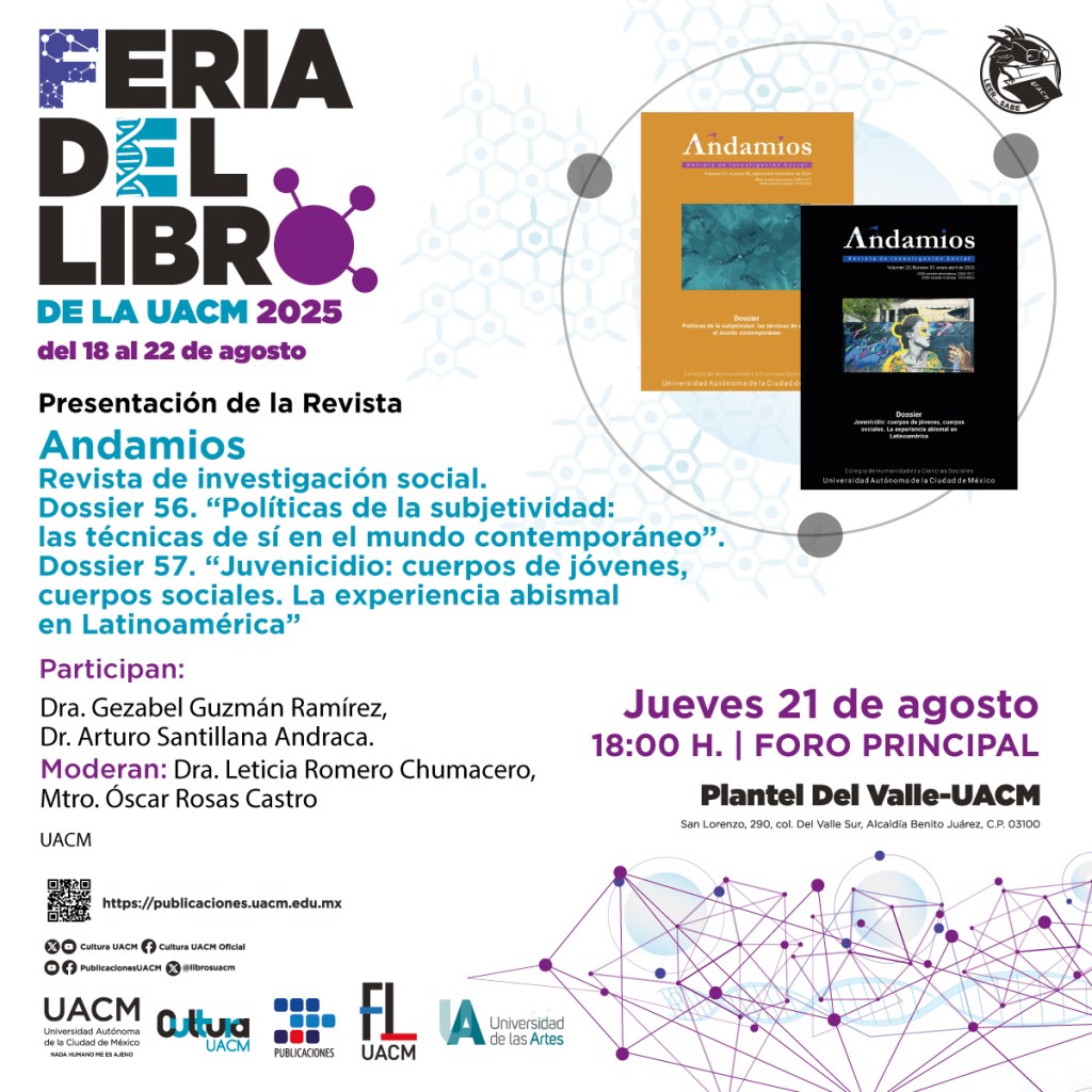 LRC 13 agosto, 2025 Imagen 2025-agosto, Andamios. Revista de Investigación Social, Feria del Libro-UACM, Presentación de libro