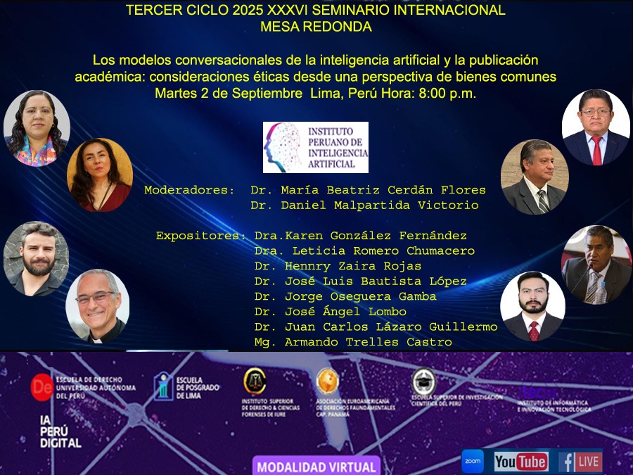 2 de septiembre de 2025: Participación en la mesa redonda «Los modelos conversacionales de la IA y la publicación académica» (Lima, Perú)