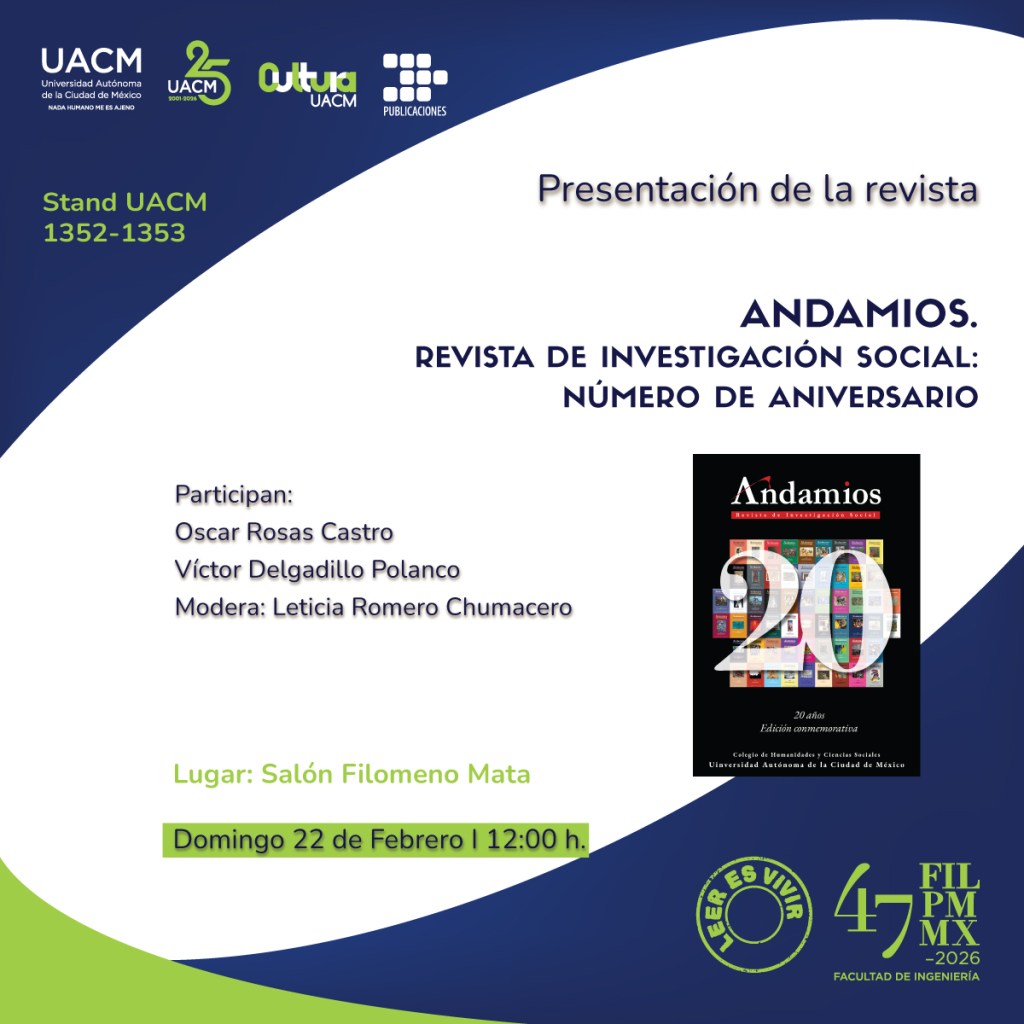 • 22 de febrero de 2026: Presentación del número de aniversario de «Andamios» en la Feria Internacional del Libro del Palacio de Minería 16 febrero, 2026